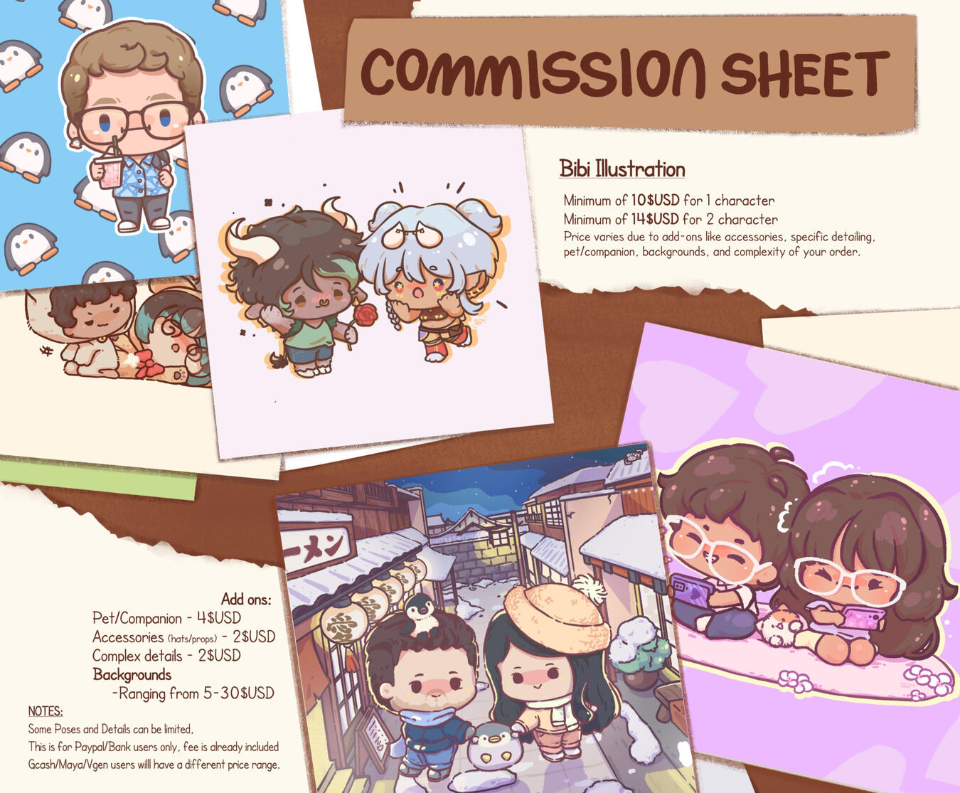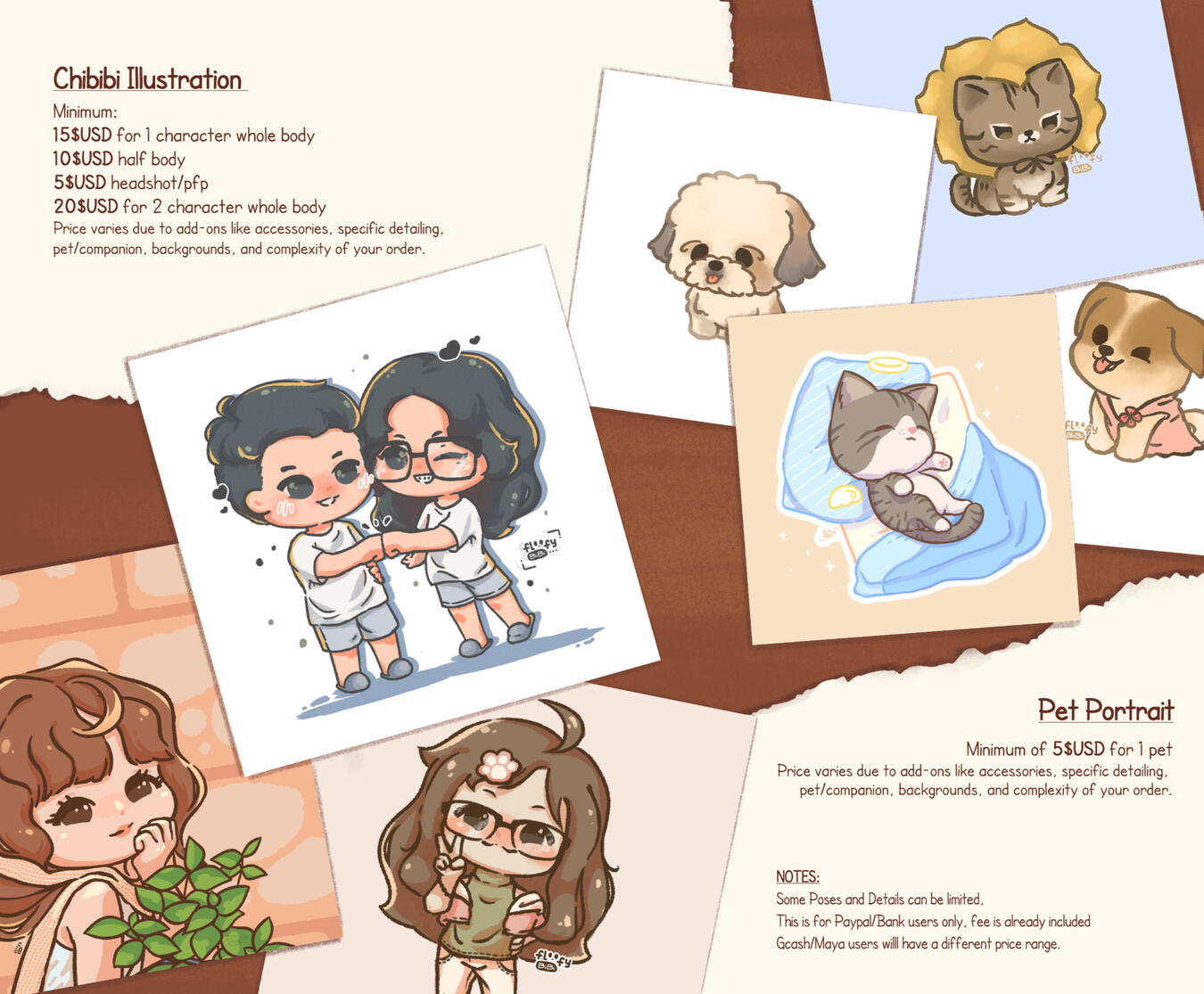 I'm an artist in the Philippines. I draw cute/kawaii illustrations from character chibis, creatures(animals), landscapes, and inscapesYou can view stuff I offer for commission, portfolio and other form to reach out and contact me.Thank you for visiting!